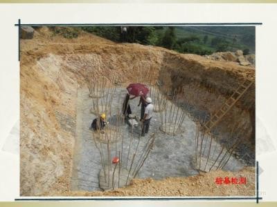 ②江西桩基检测振动法:又称动测法。它是在桩顶用各种方法施加一个激振力,使桩体及至桩土体系产生振动。或在桩内产生应力波,通过对波动及波动参数的种种分析,以推定桩体混凝土质量及总体承载力的一种方法。这类方法主要有四种,分别为敲击法和锤击法、稳态激振机械阻抗法、瞬态激振机械阻抗法、水电效应法。